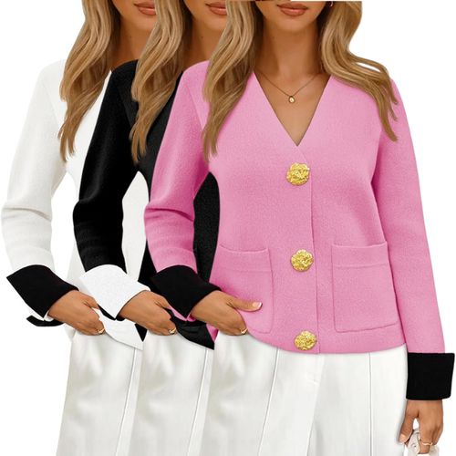 Saodimallsu V-Neck Cardigan adds cozy elegance to your fall style 🍂. button-down front, knit texture, and handy pockets 💕.