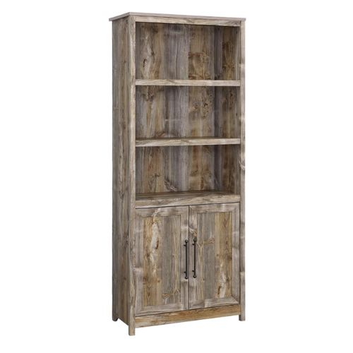 Sauder Granite Trace Bookshelf 📚 – rustic cedar finish with doors and adjustable shelves! 🏡 Perfect for books, décor, and extra storage in any room. 🌟📖🪵