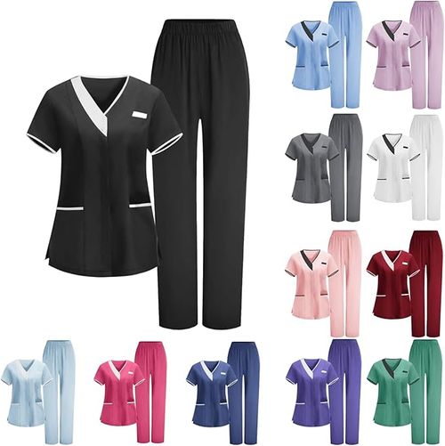 Sdwingk Scrubs Set combines comfort and functionality 🩺 Stretch V-neck top, jogger pants, multiple pockets, perfect for nurses and healthcare professionals 💙