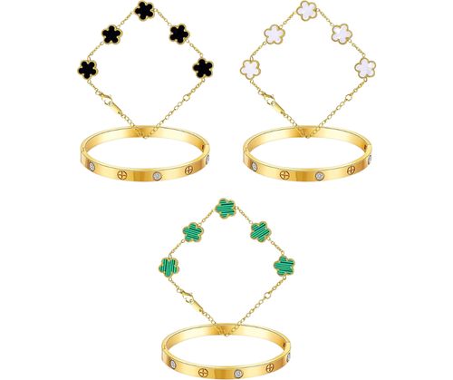 Double the luck, double the love! 🍀 Stack up these Sfloemm 18K Gold Clover Bracelets and shine bright—perfect gift for her! 💖