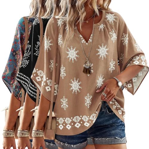 SimpleFun Boho Peasant Top! 👚🌸 Brings effortless summer style! V-neck design, 3/4 sleeves, loose fit perfect for vacation and casual wear.!