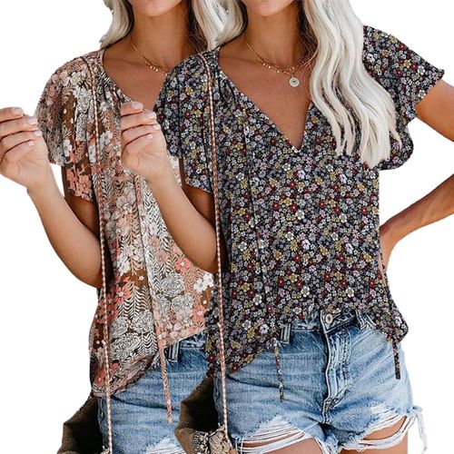 SimpleFun Boho Tops add breezy summer charm 🌸👚 Floral print, V-neck, short sleeves—perfect for casual days, vacations, and effortless style ☀️