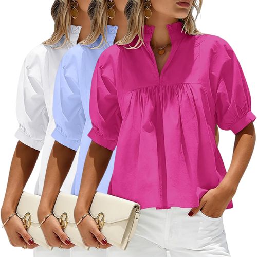 SimpleFun Puff Sleeve Blouse 🌸 chic and breezy for summer! High ruffle V-neck, babydoll peplum design, loose fit—perfect for dressy casual or everyday outfits 💖☀️👚.