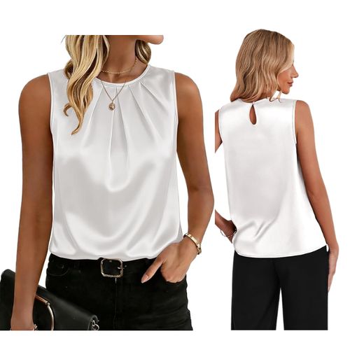 SimpleFun Silk Satin Tank Top – elegant pleated camisole for business casual and dressy looks 💼👚 Soft satin fabric, sleeveless design, versatile style perfect for office, meetings, or chic everyday wear 💖