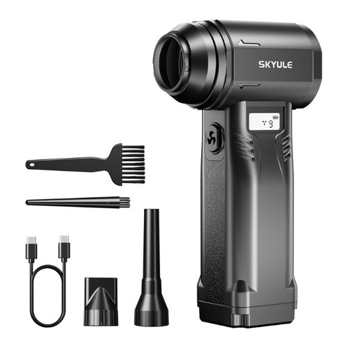SKYULE Compressed Air Duster is a powerful cordless cleaner for your PC, car, and more. 💨🖥️🚗 10,000mAh battery, 10 adjustable speeds, and a digital display with fast charging. 🔋⚙️