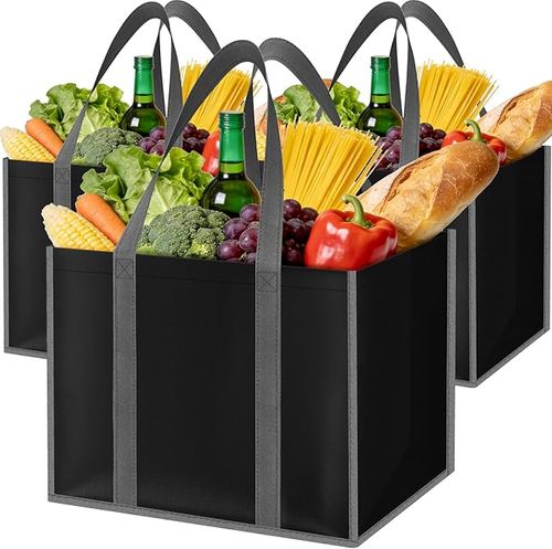 SpaceWhisper Reusable Grocery Bags make shopping simple 🛍️ Foldable water-resistant long handles perfect for groceries car trunks picnics kitchen travel storage 🖤🛒