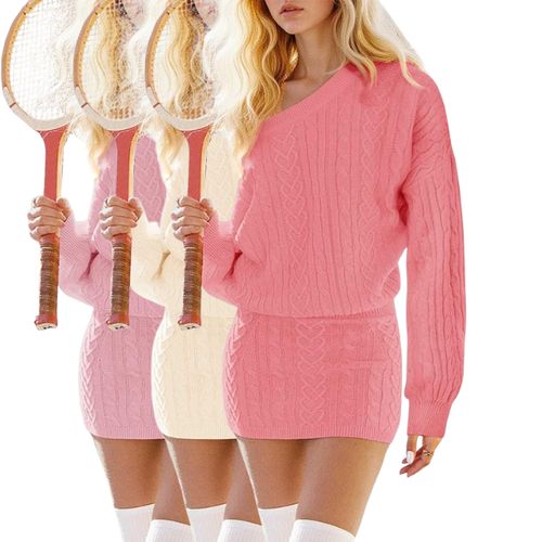 Stay cozy in the Fisoew Sweater Dress! 👗 Puff sleeves, cable knit, and perfect for casual fall outings or workouts! 🍂