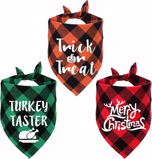 Get your pup holiday-ready with these STMK Plaid Dog Bandanas—perfect for Halloween, Thanksgiving & Christmas! 🐾🎄