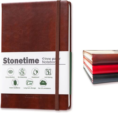 Stonetime Stone Paper Notebook! 📓A5 waterproof hardcover journal, 160 ruled pages, perfect for work, school, and everyday writing! ✍️💼🤎