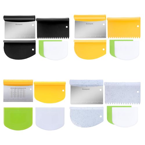 Suanyok Bench Scraper & Chopper Set 🍞🔪 stainless steel dough scraper + flexible plastic bowl/cake scrapers. Durable, easy to clean & a must-have for every kitchen! 🍴💛