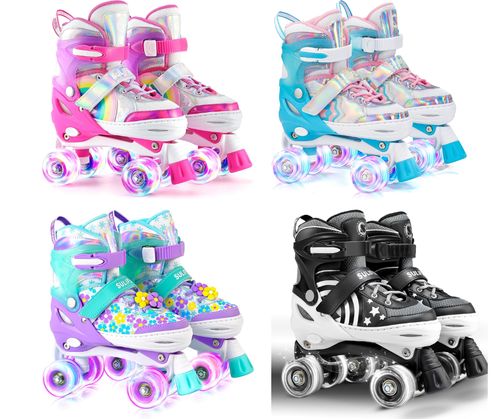 SULIFEEL Rainbow Unicorn Adjustable Roller Skates! 🛼 4-size adjustable fit, colorful unicorn design, perfect for kids indoor and outdoor skating fun! 🌈💖