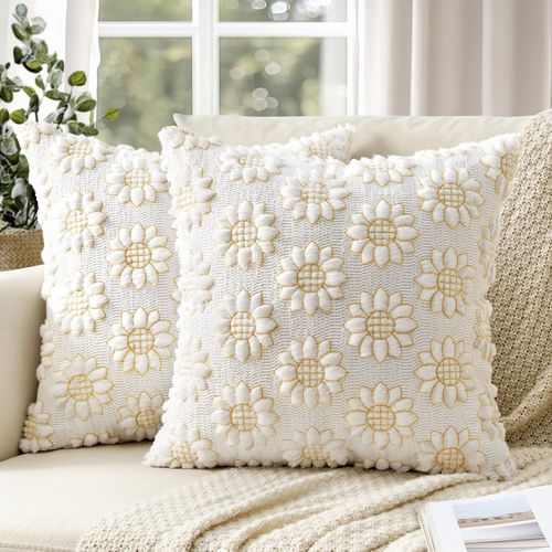SWANCOCO Spring Pillow Covers πŸŒΌπŸ›‹οΈ brighten your home with cozy charm! 18x18 inch set of 2, pure white faux fur jacquard, sunflower design, perfect for couch, sofa, or farmhouse decor πŸ’–πŸ‘.