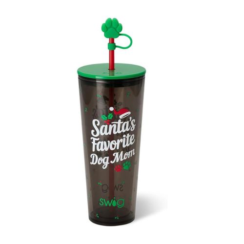 Swig Life 24oz Plastic Tumbler keeps drinks handy on the go 🥤BPA-free, cup holder friendly, reusable with lid and straw, festive dog mom design 🎅🐶.