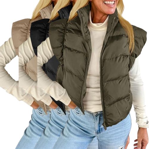 Tankaneo Cropped Puffer Vest adds trendy warmth to any outfit 🧥. cap sleeves, zip-up front, and stand collar ❄️.