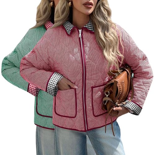 Tankaneo Cropped Quilted Jacket 🧥💞 combines cozy warmth with trendy flair! Lightweight plaid design, zip-up style, and handy pockets ❄️