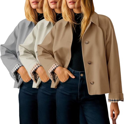 Tankaneo Cropped Trench Coat 🧥🍂 lightweight single-breasted jacket. Stylish fall windbreaker—perfect for layering, everyday fashion, and cooler weather 🌬️💛.