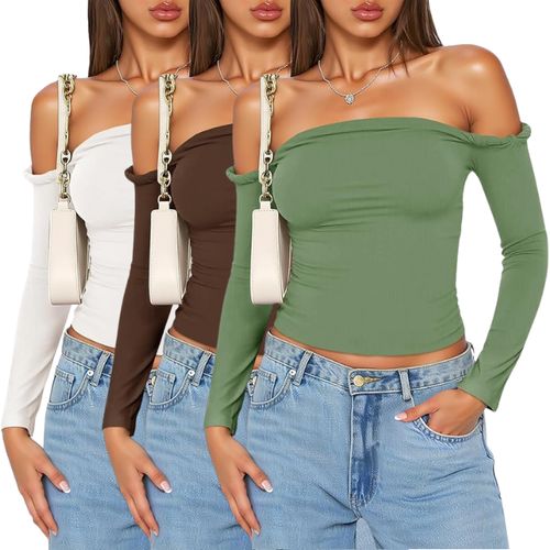 Tankaneo Off-Shoulder Top 💋 brings flirty Y2K vibes! Slim fit, ruched detail, and trendy cropped style 💖👚.