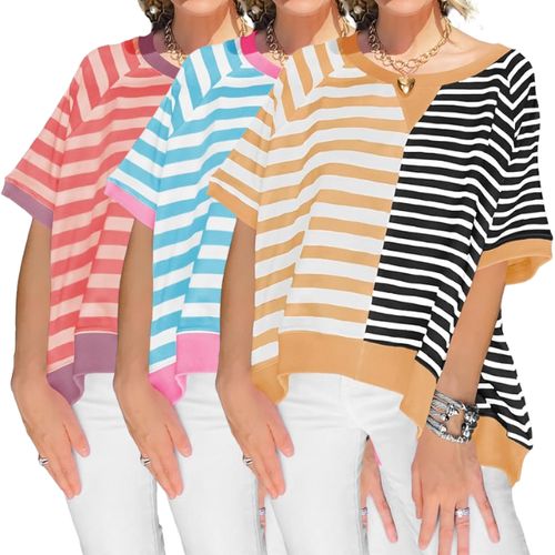 Tankaneo Oversized T-Shirt adds laid-back charm to your casual look 💕. striped block pattern, loose fit, and soft comfy fabric 👚.