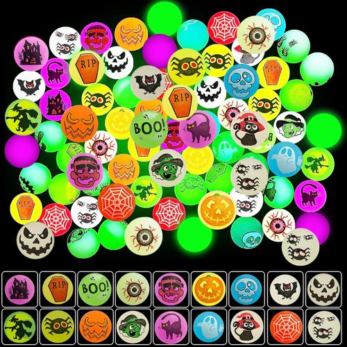 Taocco 144pcs Halloween Glow-in-the-Dark Bouncing Balls! 🎃 18 spooky designs, super bouncy, and perfect for party favors or trick-or-treats. 🕸️
