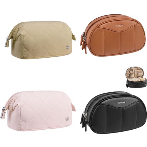 Telena Puffer Makeup Bag! 💄 Padded nylon wide-open design, lightweight travel makeup organizer, perfect for storing cosmetics and essentials on the go 🧳💖