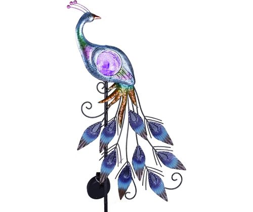 TERESA'S COLLECTIONS Solar Garden Lights Outdoor! 🦚  Metal peacock design, crackle glass ball, and solar-powered glow for charming garden nights! 🌙💜