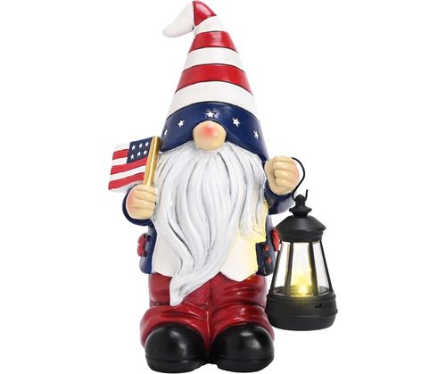TERESA'S COLLECTIONS Solar Lantern Patriotic Gnome! 🎆 Adorable garden charm with all-American spirit! 🔥
