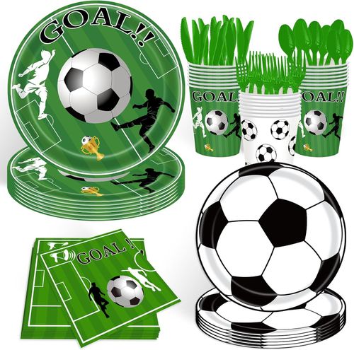Kick Off the Fun! ⚽ Tonyta 168-Pc Soccer Party Set = decorations, plates & cups for 24 guests. Perfect birthday vibes! 🎉