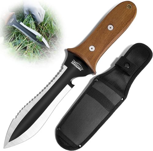 Topfeel Hori Hori Garden Knife makes gardening easier and more precise 🌿🔪 7" stainless steel blade, full‑tang wood handle, includes sheath for weeding, planting, and digging.
