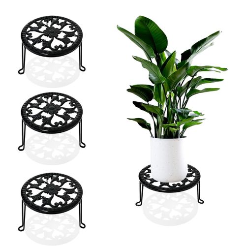 toppsun 3-Pack Metal Plant Stands 🪴🖤 plants with sturdy, stylish support. Heavy-duty iron, round design, perfect for indoor or outdoor spaces 🌿🏡