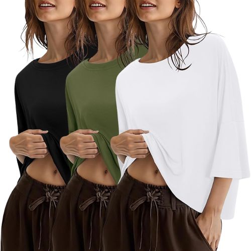 Totatuit Cotton Cropped T-Shirt provides a modern, oversized fit for daily wear. This breathable crew neck includes elbow sleeves. ๐๐งต๐๏ธ