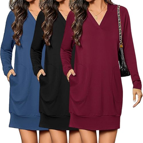 Totatuit Oversized Hoodie Dress keeps you cozy and chic for fall! 🍂 V-neck style, long sleeves, and handy pockets for effortless casual fashion. 👗