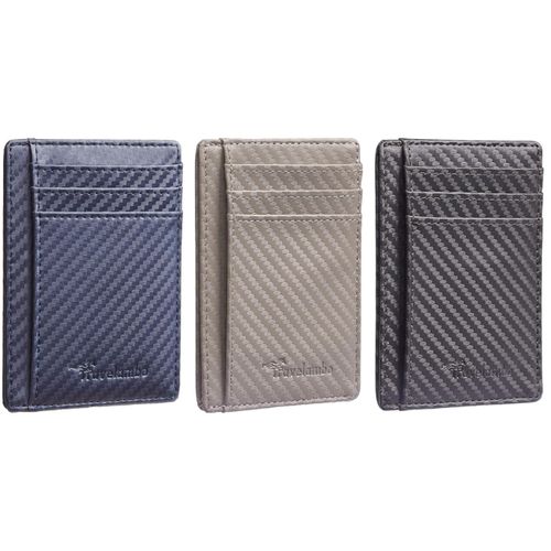 Travelambo Front Pocket Minimalist Leather Slim Wallet! 💳 carbon fiber texture, a slim profile for your front pocket, and RFID blocking to protect your cards. 🔒
