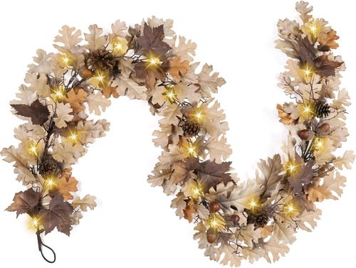 Tulvend Fall Garland adds warm, festive flair to your home with colorful maple leaves and pinecones. It’s 6 feet long, features 30 warm lights, and is perfect for mantels, tables, or indoor/outdoor fall décor. 🕯️