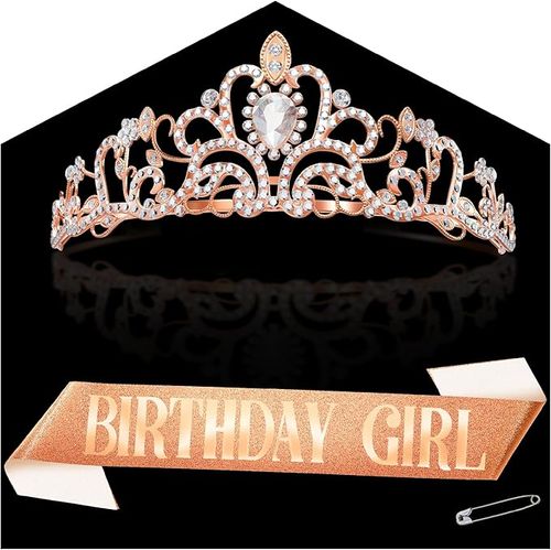 V TOWER Birthday Girl Sash and Crown celebrate her special day. 👑🎉 Shiny satin sash, sparkling crown, bold lettering for parties. 🎂