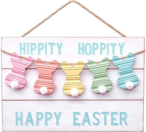 Valery Madelyn Happy Easter Wooden Wreath! 🐰 Instantly adds cozy farmhouse vibes to your front door! 🌸