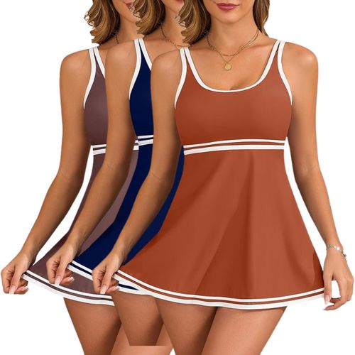 VIAURBE Tankini Sets combine style and confidence at the beach. 🏖️ Color-block swimdress with tummy control, two-piece design perfect for 2025 summer swimsuits. 🌊👙