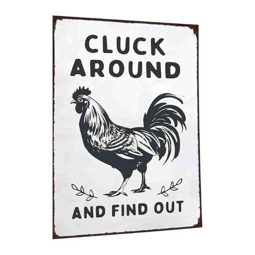 VIVENBOPTI Funny Chicken Tin Sign ๐Ÿ”๐Ÿ˜‚ – vintage 8x12 décor with “Cluck Around and Find Out” quote. ๐ŸŒŸ Farmhouse style, durable metal, great for kitchen or garden. ๐Ÿก๐ŸŒพ