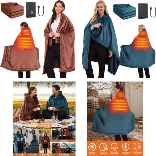 VOFUOTI MAX Heated Blanket Battery Operated keeps you warm anywhere 🔥🛋️. Portable shawl, zipper pockets, 3 heat levels, lasts up to 8 hours ⚡🧣