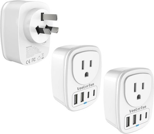 VooLerTun 2-Pack Type I Plug Adapter keeps devices powered worldwide 🌏⚡4 USB ports (2 USB-C), 1 US outlet—perfect for Australia and Timor travel convenience 🔌✈️