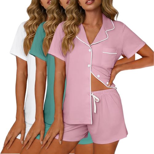 VRVOICE Button Down Pajamas Set! ๐ Short sleeves, 2-piece shorts set, and cozy lounge fit for relaxing nights. ๐