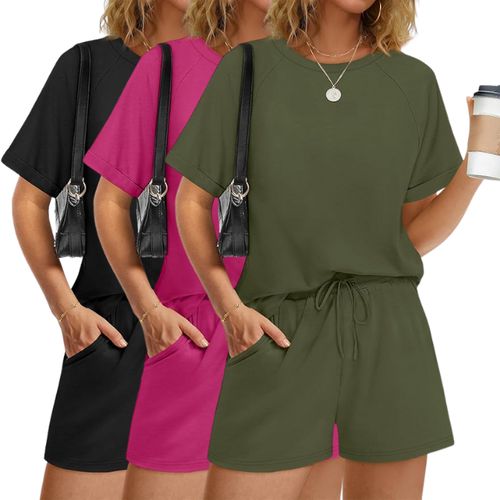 WIHOLL  2 Piece Lounge Sets keep you comfy all day. Soft fabric, drawstring shorts, and handy pockets for easy wear. 🌴👚