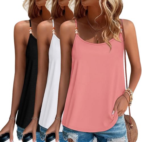 WIHOLL Beaded Spaghetti Strap Cami is your go-to summer essential 🌴 Flowy fit, scoop neck, and elegant beaded straps—lightweight, flattering, and perfect for beach, vacation, or casual days 💕