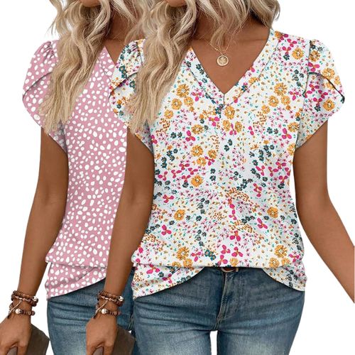 WIHOLL Womens Dressy Casual Petal Sleeve V Neck Summer Tops elevate everyday style 👚 Petal sleeves, V-neck, short sleeves for work 💼🌸