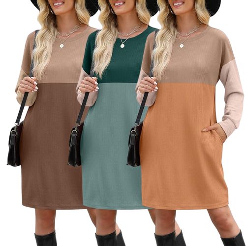WIHOLL Long Sleeve Dress 🍂💖 combines comfort and style effortlessly! Loose fit, flowy mini design, and handy pockets ✨🧸.