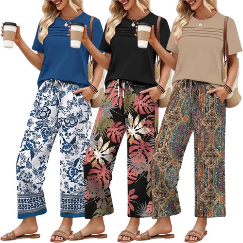 WIHOLL Lounge Set! 🌸 Wide-leg pants with matching top, comfy and stylish outfit perfect for travel, airport looks, beach vacations, and casual lounging! ☀️✈️💖