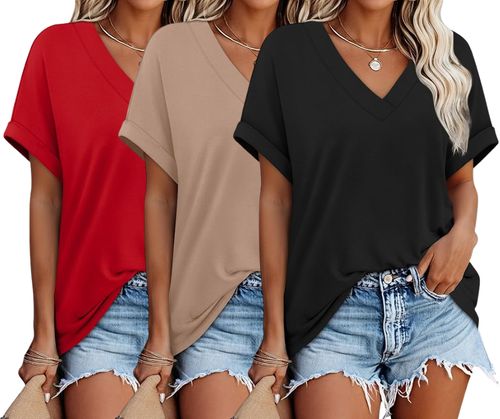 WIHOLL Oversized V-Neck T-Shirts are breezy and stylish. ☀️👚 Short rolled sleeves, plus-size fit S-4XL—perfect for casual summer 2026 outfits. 💖