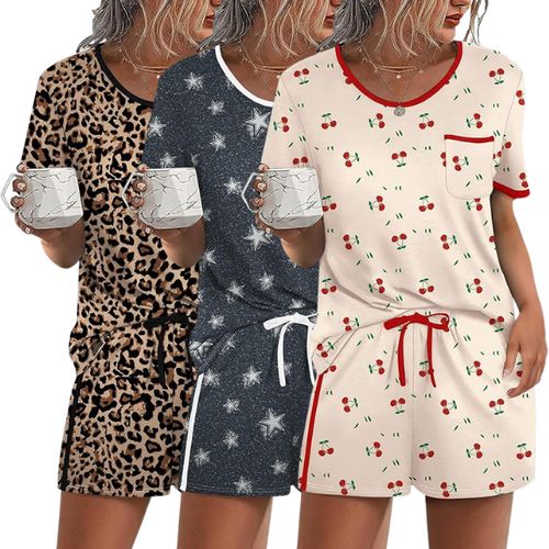 WIHOLL Pajamas set delivers comfy two-piece summer sleepwear 😴 Short sleeves, chest pocket, soft fabric keep you cool night 🌙