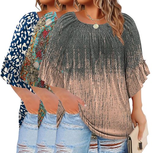 WIHOLL Plus Size Tops keep summer style comfy and chic. 3/4 sleeves, dressy-casual fit, and flowy silhouette. 🌸👚