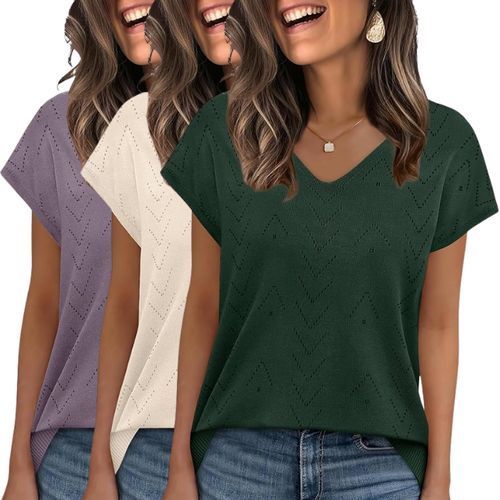WIHOLL Short Sleeve Sweater 💼💖 adds chic flair to any outfit! V-neck, cap sleeves, and trendy business-casual style 🌸.
