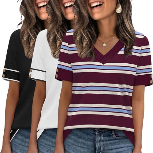 WIHOLL Short Sleeve Sweater 🧶 adds lightweight style for summer or fall. Soft knit, cute buttons, and a trendy flattering fit 👚💖.